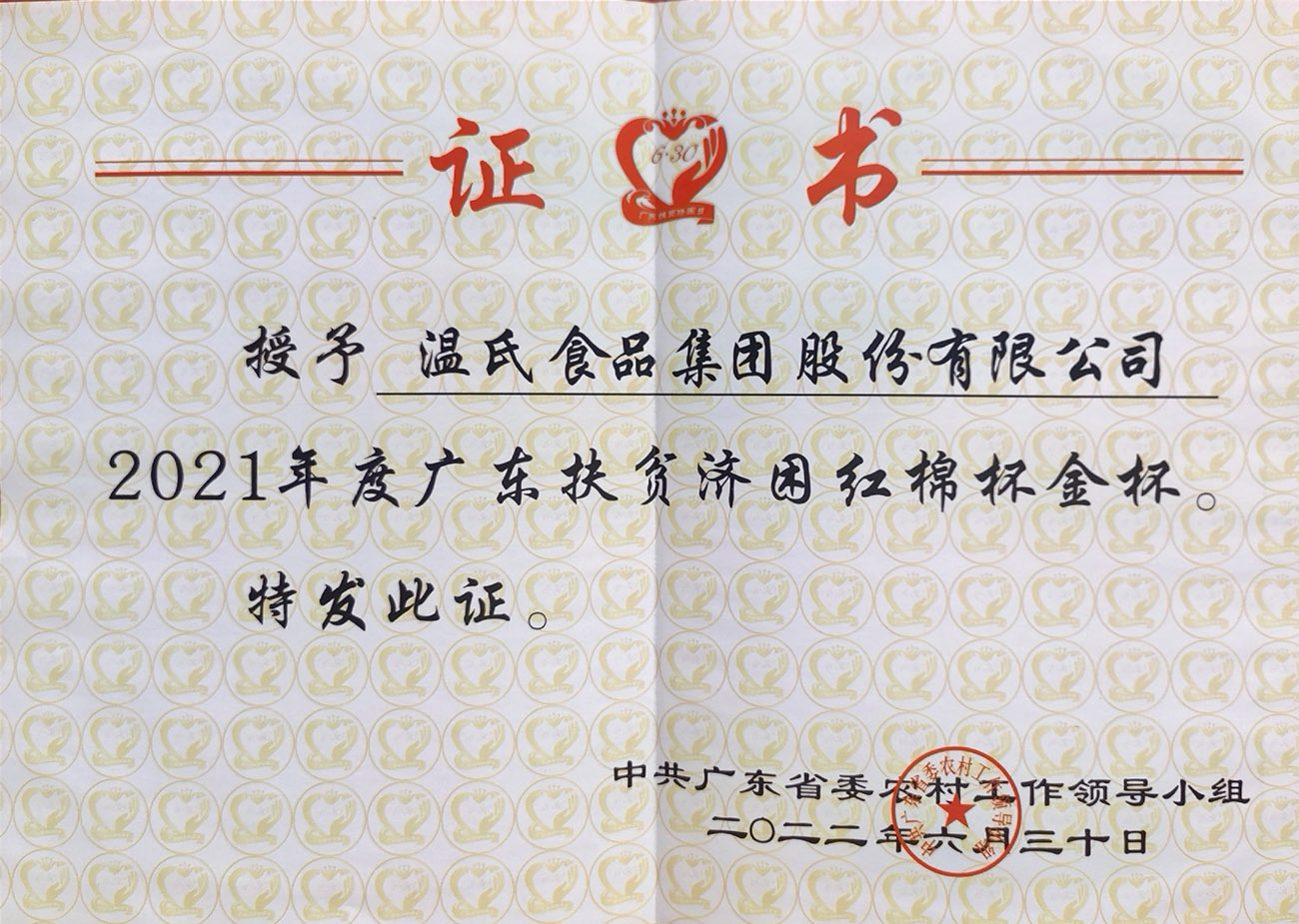 尊龙凯时股份被授予2021年度广东扶贫济困红棉杯金杯
