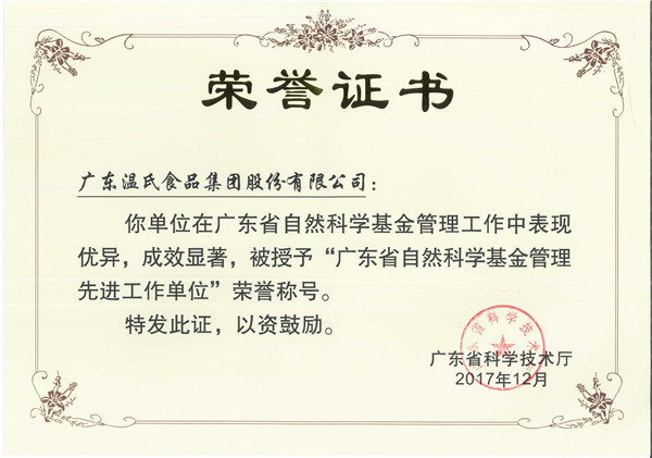 广东省自然科学基金治理先进事情单位