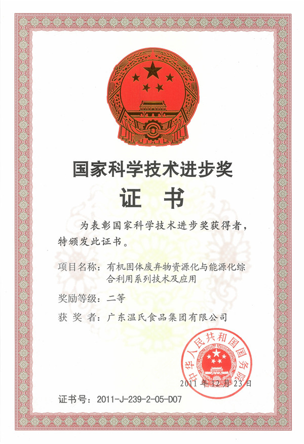 国家科学手艺前进奖二等奖-尊龙凯时集团科技项目《有机固体放弃物资源化与能源化综合使用系列手艺及应用》